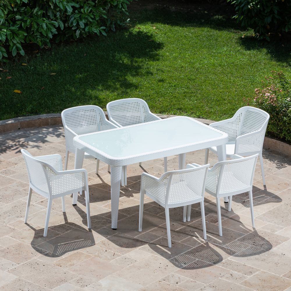 Beyaz Dış Mekan Masa Sandalye Takımı Şıklık ve Dayanıklılığı Bir Araya Getirin