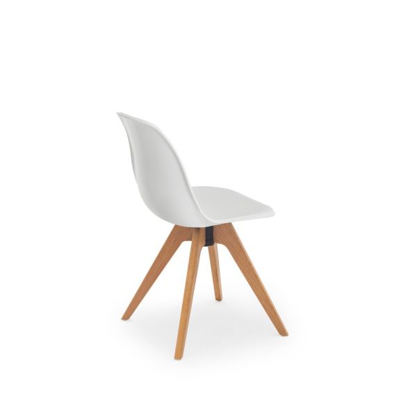 Eos sandalye enjeksiyon teknolojisi ile üretilen ortopedik beyaz renk plastik oturum gürgen ağacı naturel kayın rengi zarif dayanıklı ahşap ayaklı rahat oturumlu şık modern sağlam sandalye