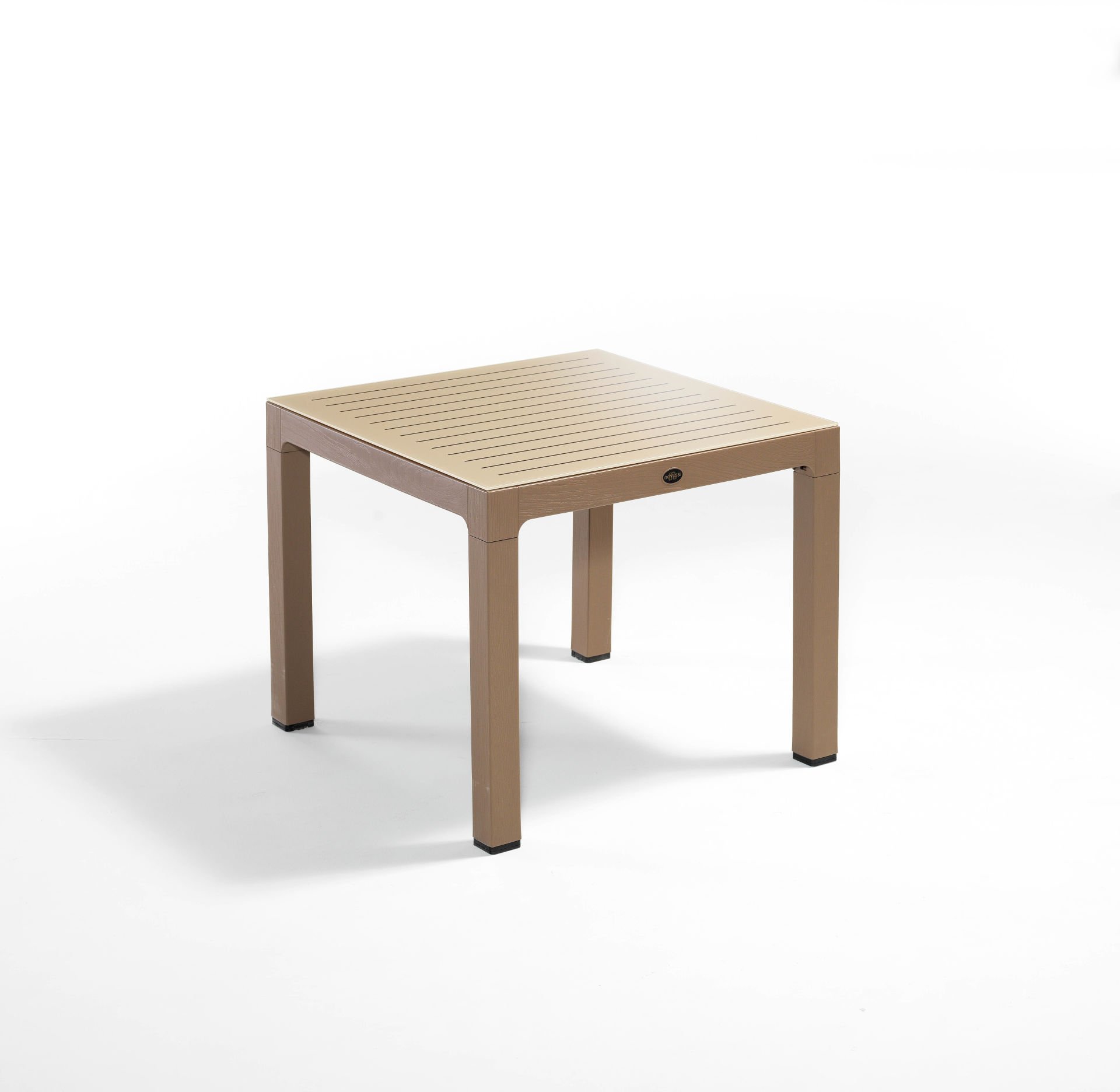Kum Beji Rattan Bahçe Masası Kare 90x90 cm Cappuccino Renkli Temperli Camlı